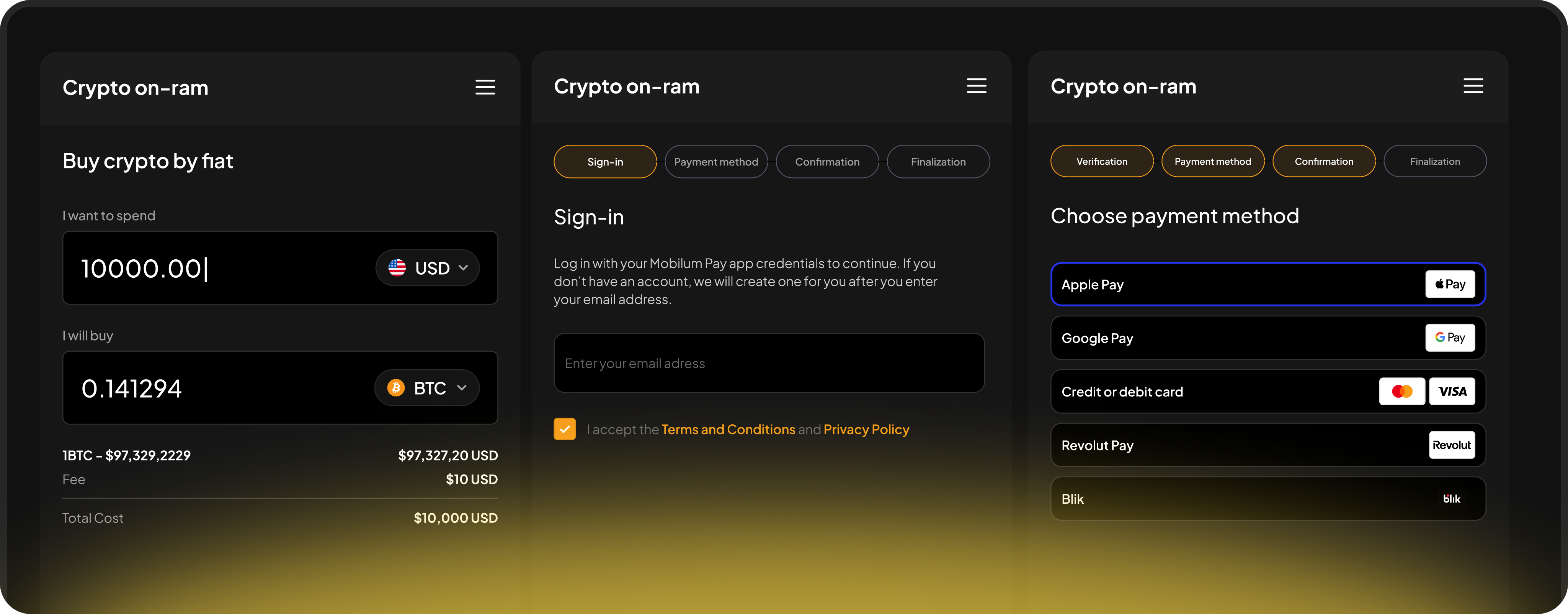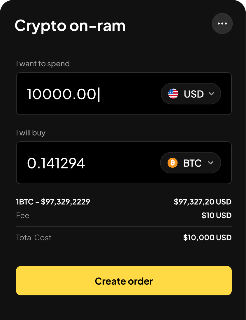 The on-ramp is exactly what I needed — straightforward, fast, and secure. I can move between fiat and crypto without any hassle.